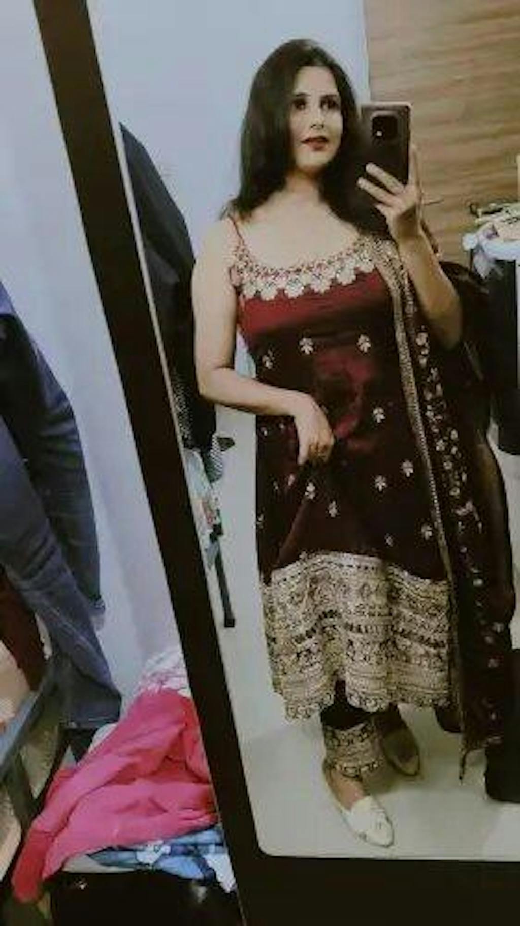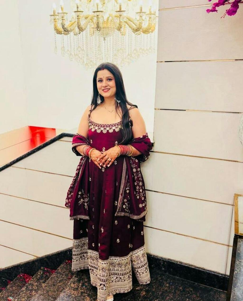 This Alveera Premium Maroon Anarkali Suit Set Indulge in regal charm with the Monshika Premium Maroon Anarkali Suit Set, designed in luxurious Pure Vichitra Silk with dazzling 5mm sequin embroidery. Finished with fancy tassels, latkan borders and full-sleeve elegance – this set is a celebration of grace, class and comfort.
