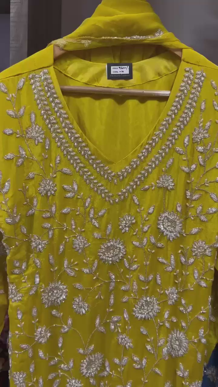 This Farishta Fit Salwar Suit. Crafted from premium faux georgette with intricate chinè sequence work, this fully stitched ensemble offers a flattering fit with heavenly charm. Paired with a flowy palazzo and a matching dupatta, it's perfect for festive evenings, celebrations, or making a statement at any event.