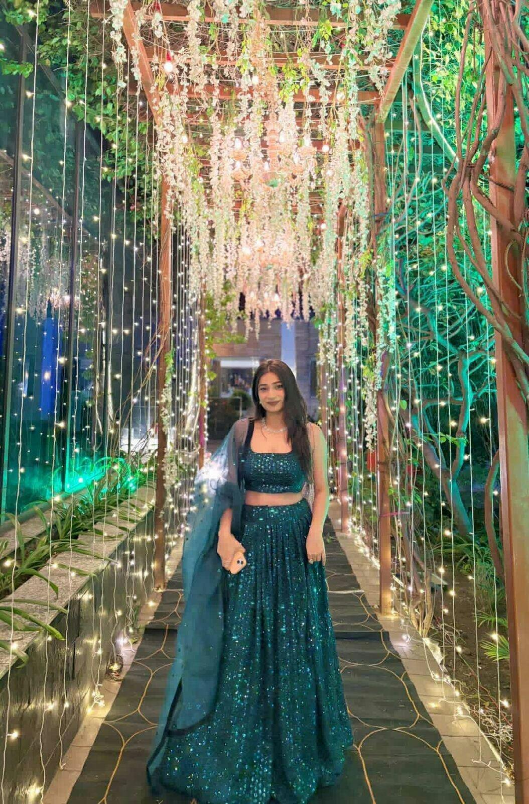Radiate elegance in our Gleaming Green Lehenga Choli. Crafted with exquisite attention to detail, this ensemble features a vibrant green hue that captivates the eye. The shimmering fabric adds a touch of luxury, while the intricate embroidery enhances its allure. Perfect for weddings, festivities, or special occasions, this ensemble promises to make you the epitome of grace and style.