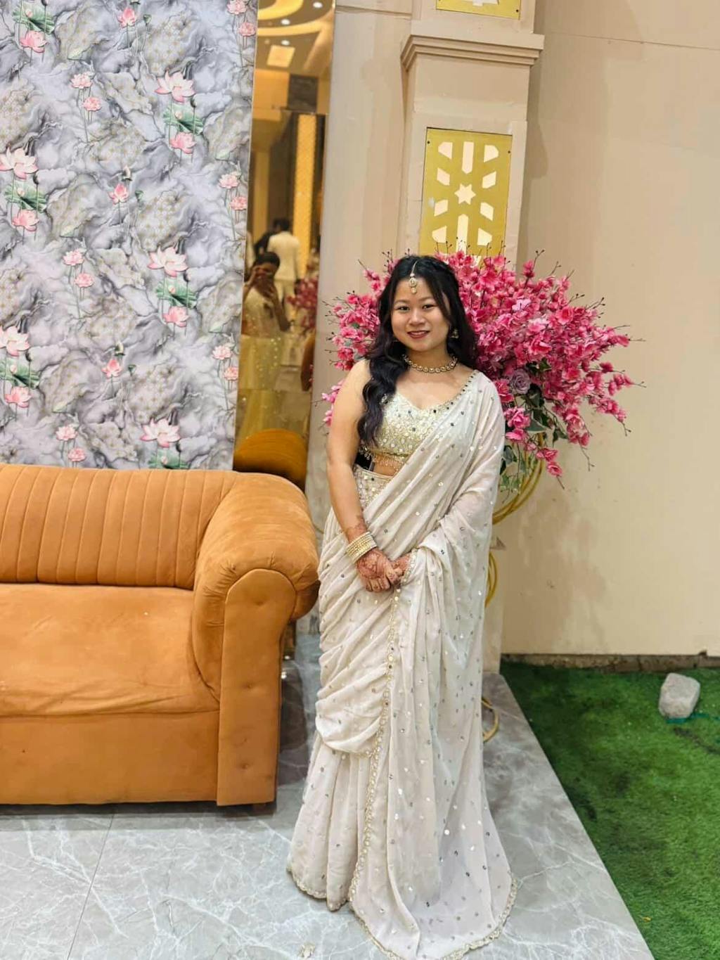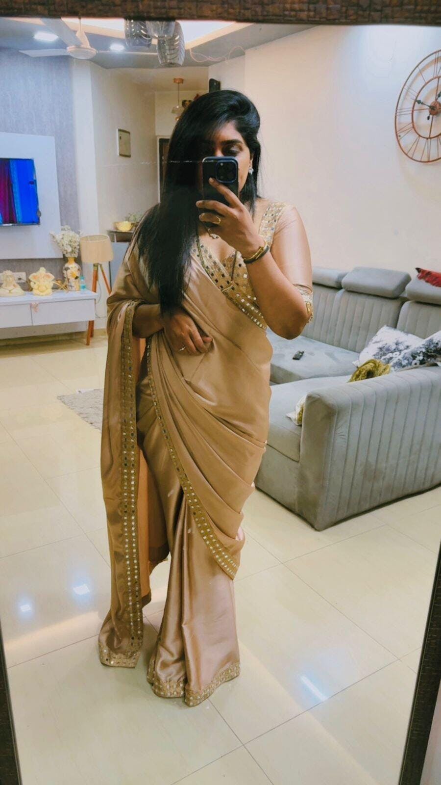 This Desi Girl Mirror Work Saree featuring intricate mirror embellishments and traditional craftsmanship, blending vibrant ethnic charm with elegant contemporary style perfect for festive and celebratory occasions.