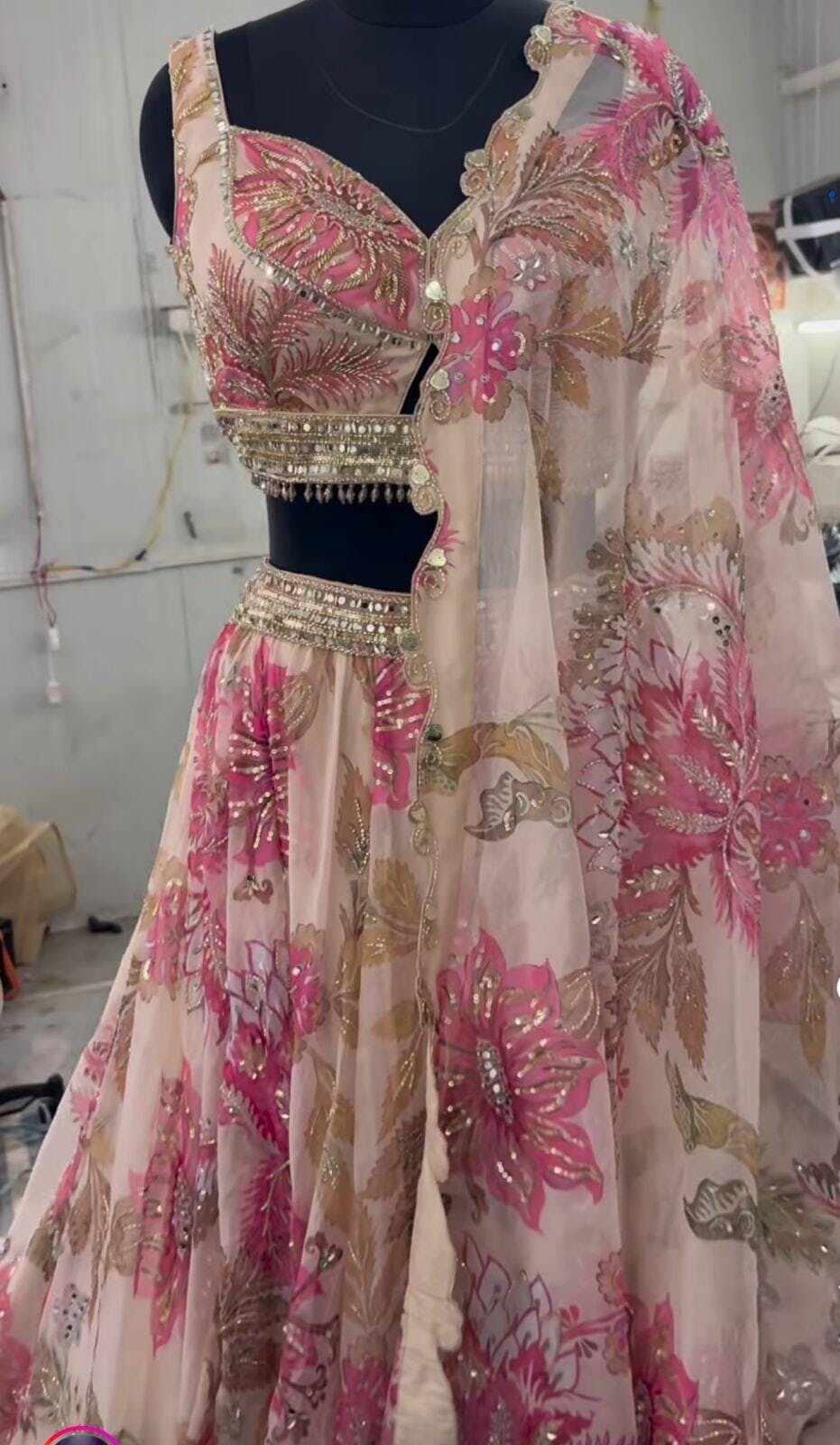 This Sparkle Symphony Lehenga Choli is a mesmerizing blend of tradition and glamour. Adorned with intricate mirror work, it creates a symphony of shimmering reflections, bringing a dazzling effect with every movement. The soft, flowing lehenga and the beautifully embellished choli make this ensemble perfect for any festive occasion, ensuring you stand out in radiant elegance. Whether it's a wedding or a celebration, this lehenga choli promises to add a touch of sparkle to your special day.