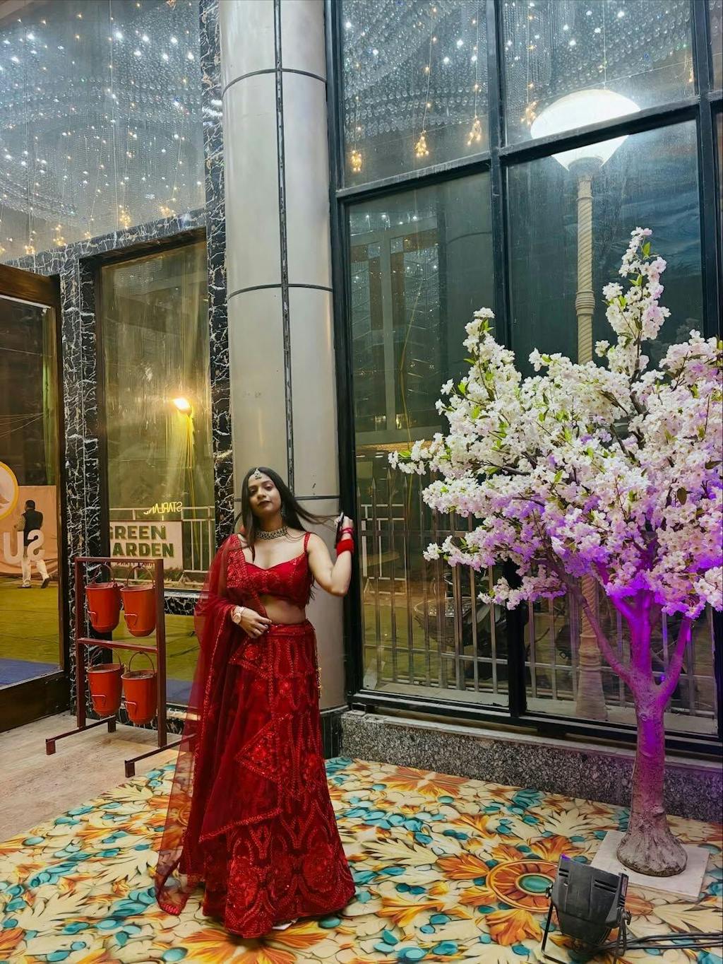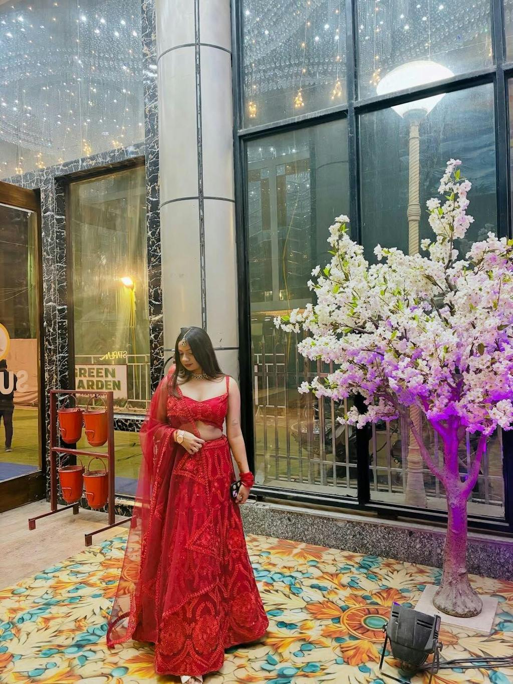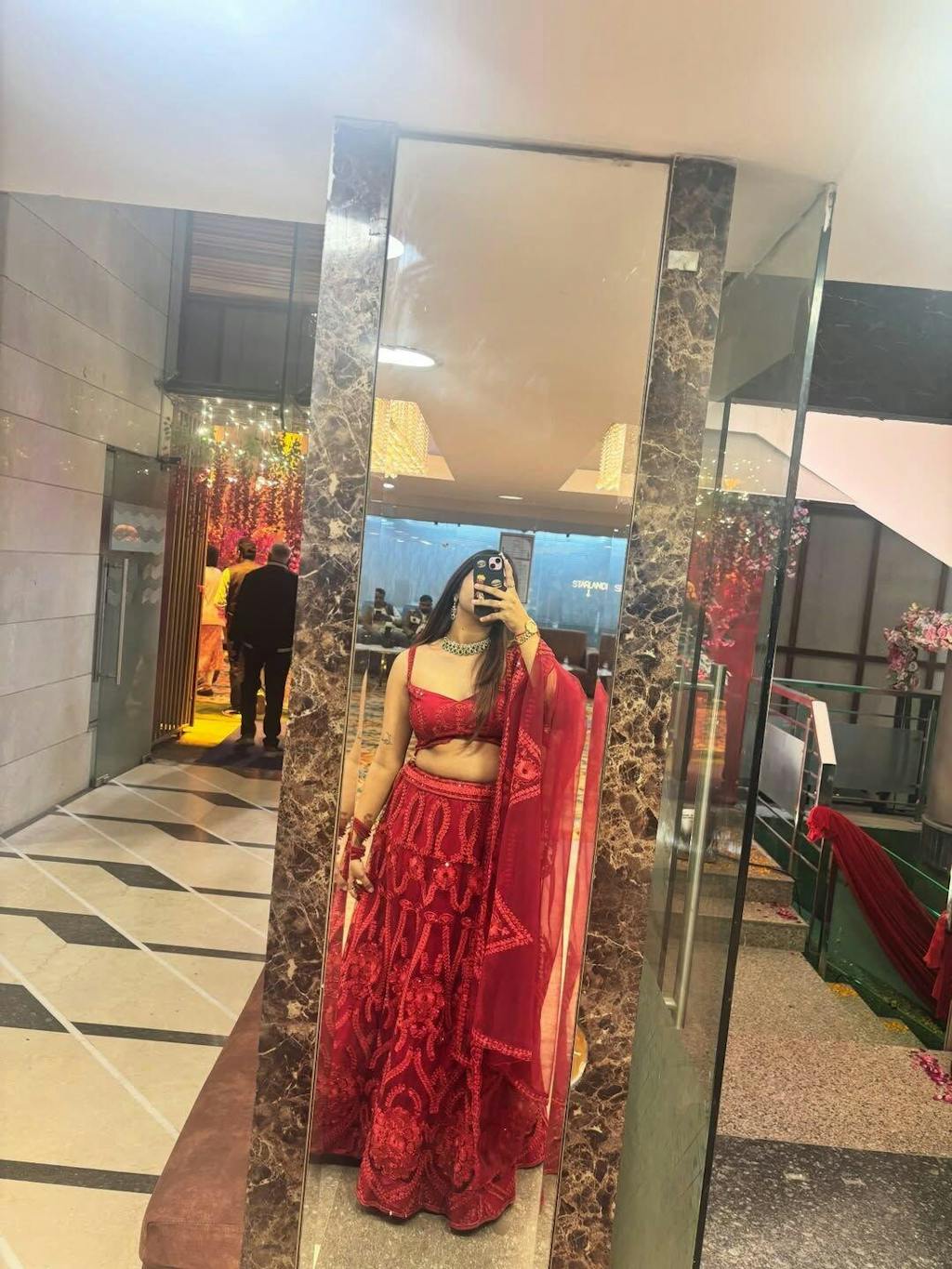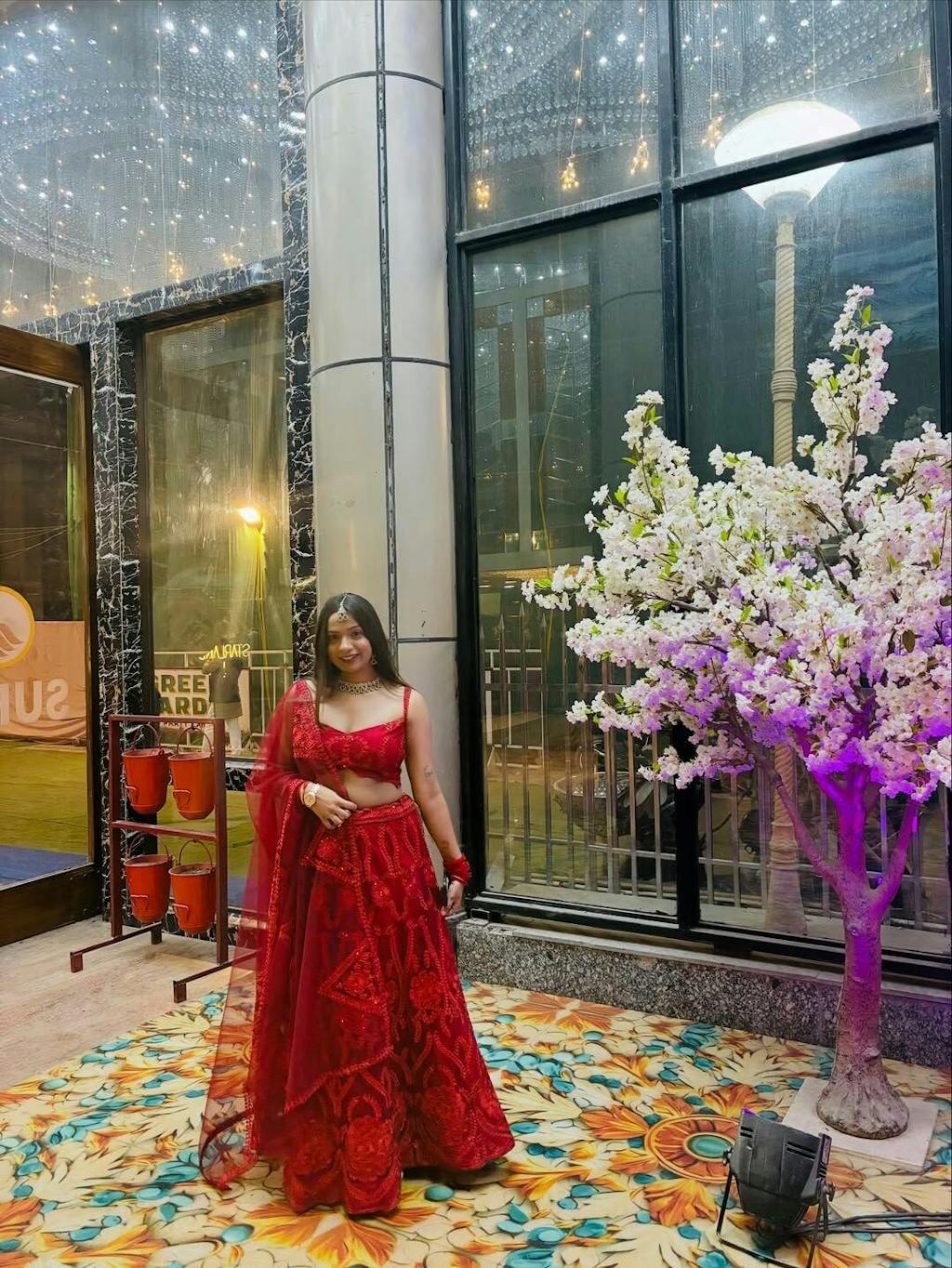 Add some razzle dazzle to your wardrobe & be a showstopper in this gorgeously designed maroon glitter lehenga