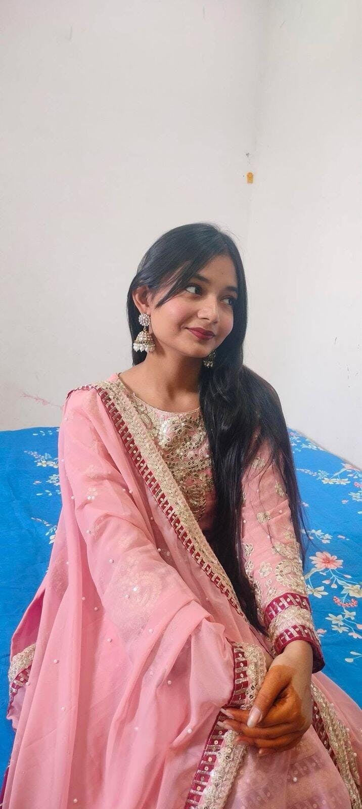 This Noor-e-Sharara Set, a masterpiece crafted from luxurious faux georgette. The top features intricate thread embroidery with sequins, rivet moti, and a delicate lace border, while the sharara flows gracefully, adorned with matching embellishments and elastic for a perfect fit. The accompanying dupatta, with its four-side lace border and exquisite detailing, completes the regal ensemble. Whether it’s a wedding, celebration, or festive occasion, the Noor-e-Sharara Set promises to make you the center of attention with its timeless beauty and sophistication.