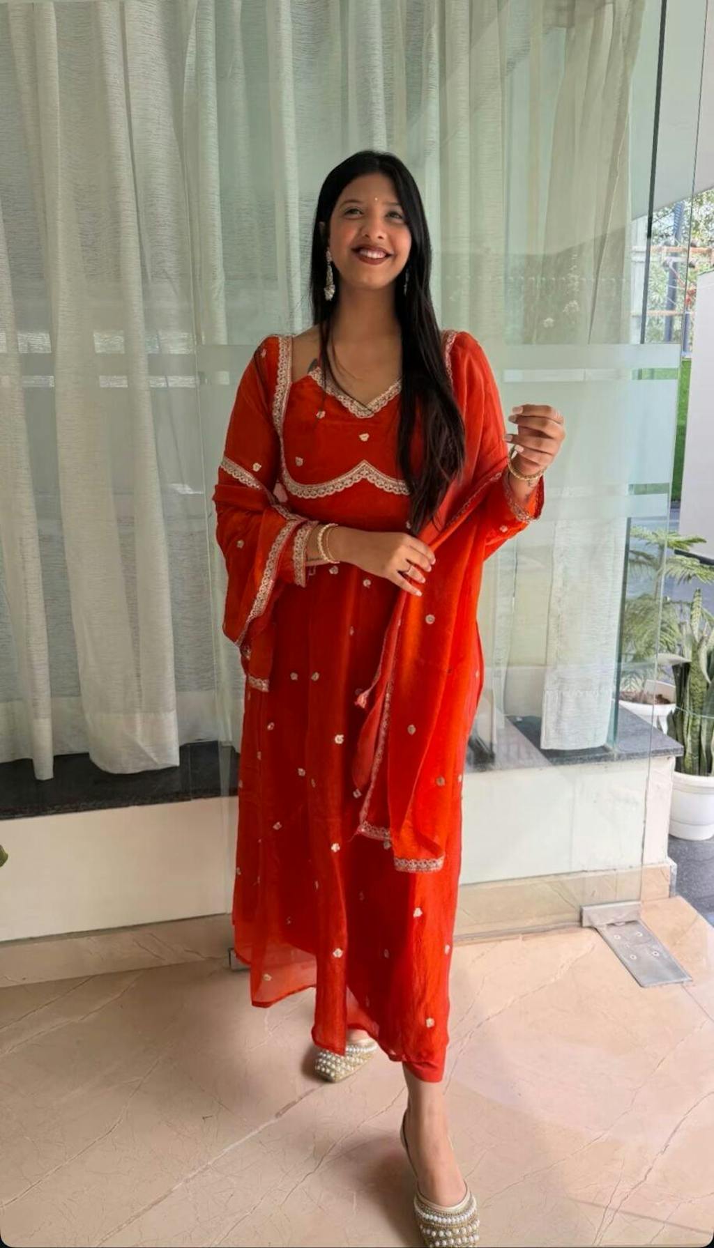 This Roja Blossom Salwar Suit a graceful ensemble crafted in rich fabric, adorned with delicate floral motifs and subtle embroidery. Inspired by the beauty of blooming roses, this piece blends tradition with a touch of romance, perfect for festive and special occasions.